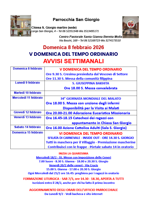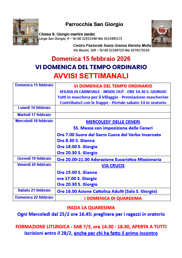 Foglietto Messa di domenica 15 febbraio