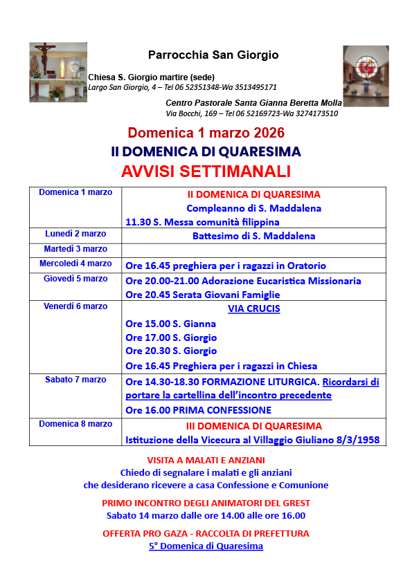 Foglietto Messa di domenica 1° marzo