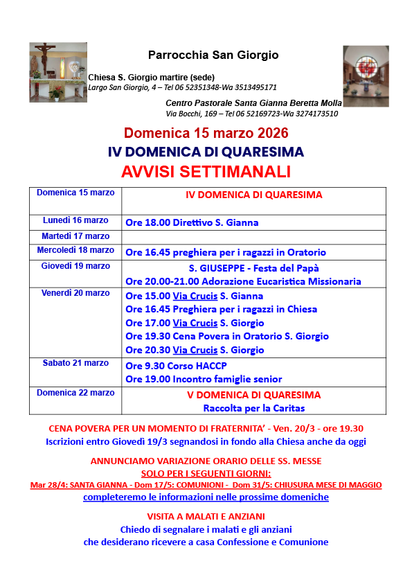 Foglietto Messa di domenica 15 marzo