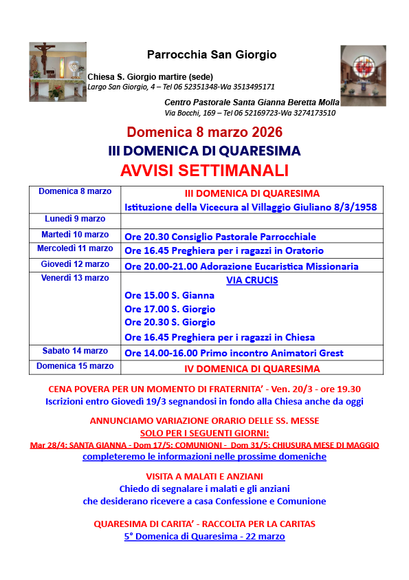 Foglietto Messa di domenica 8 marzo